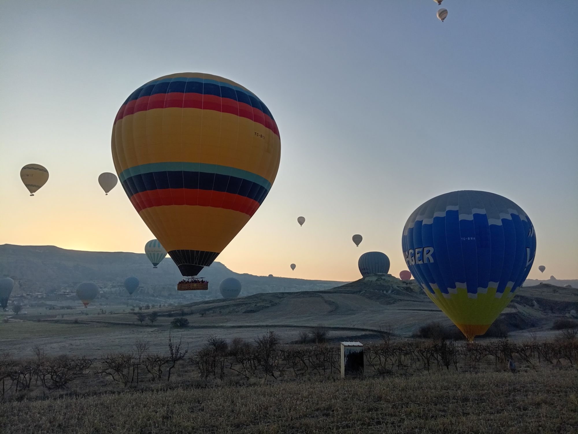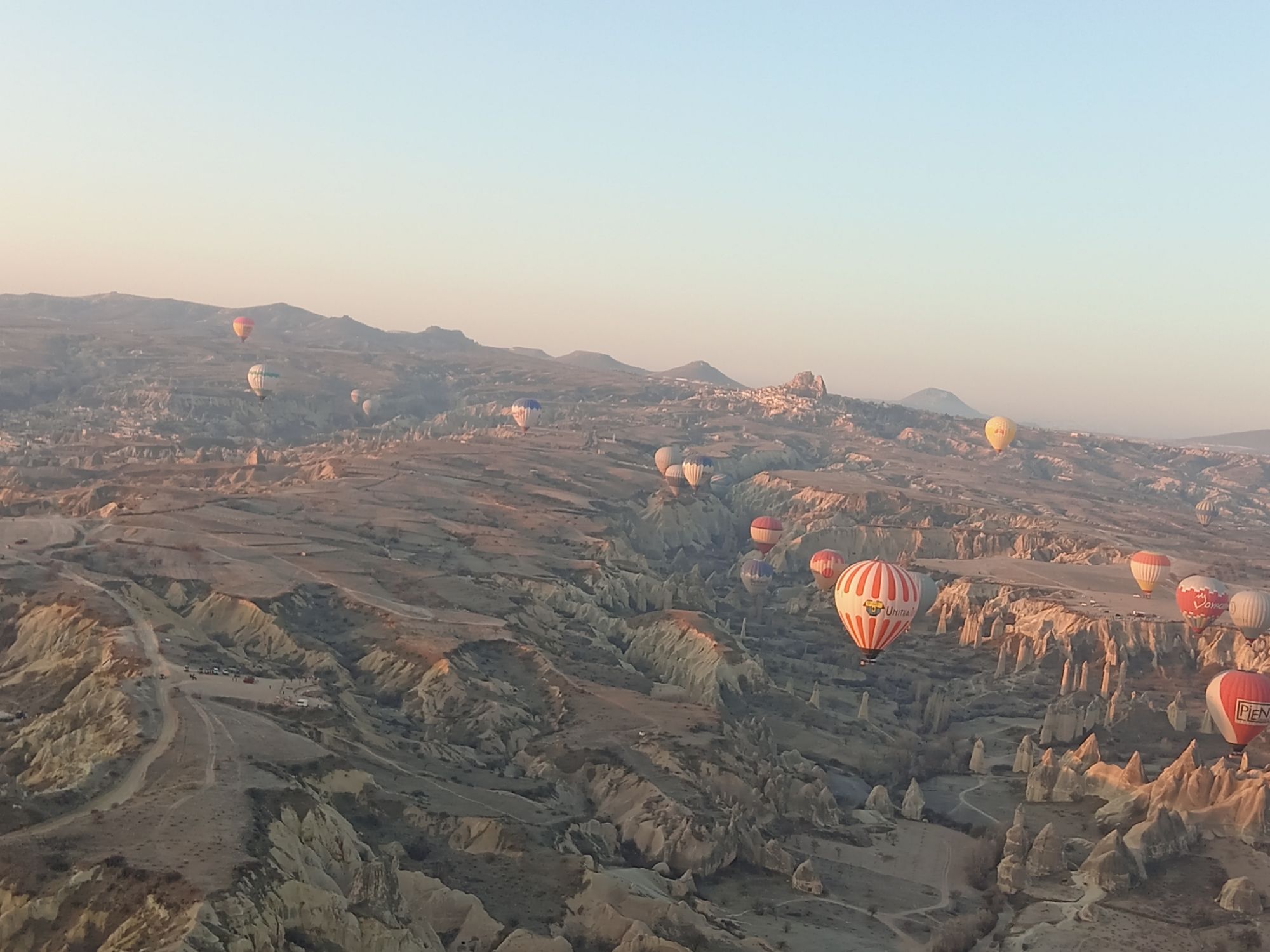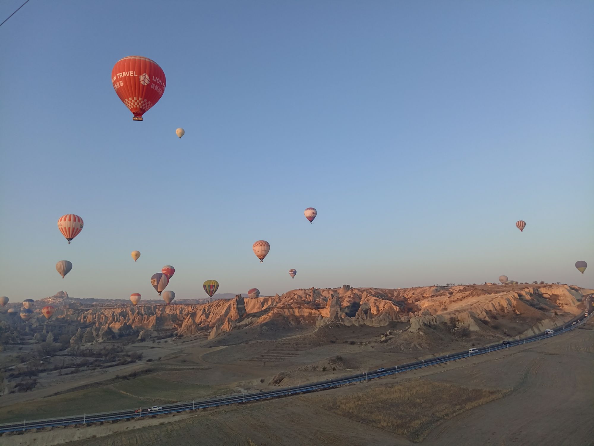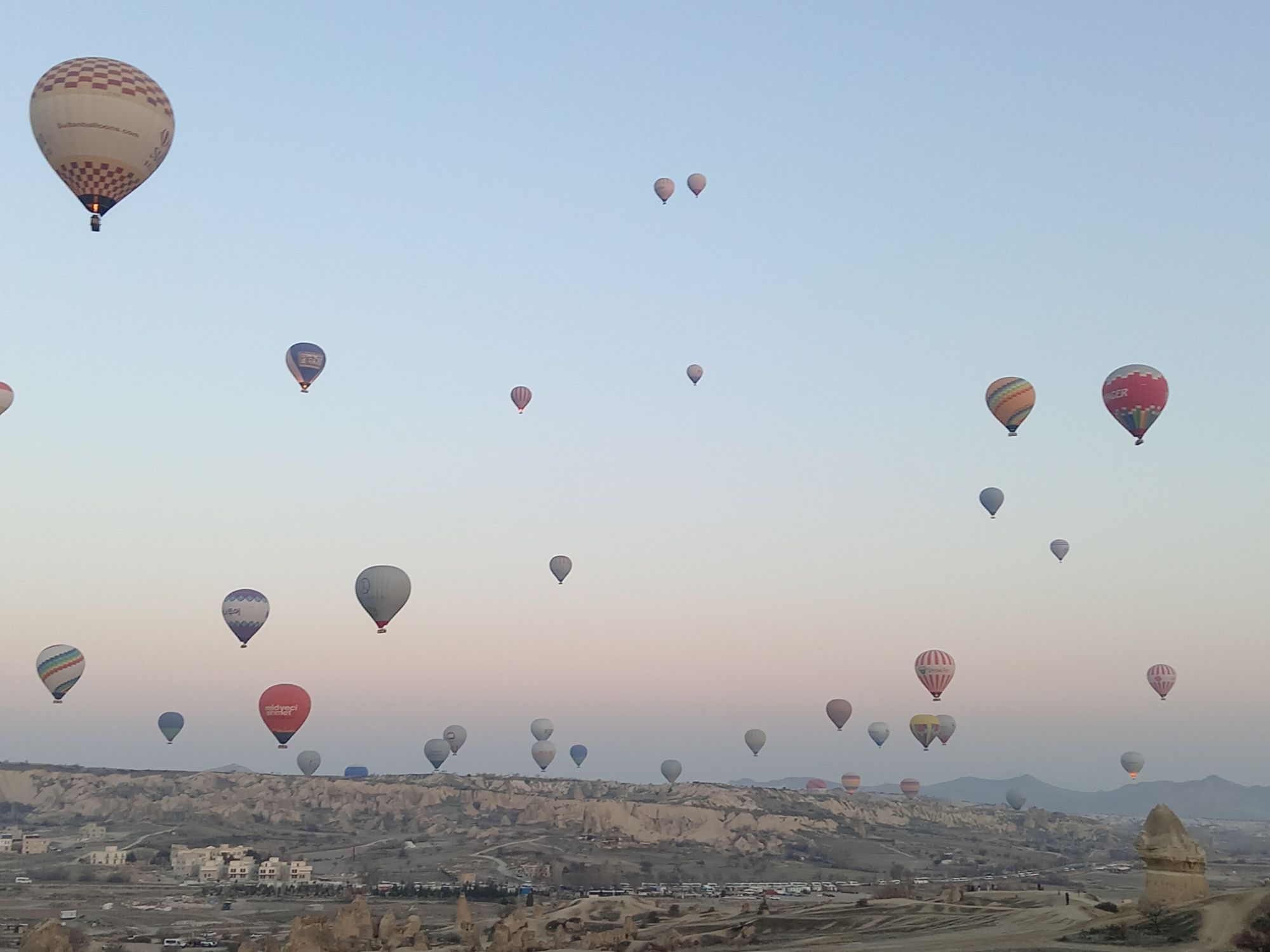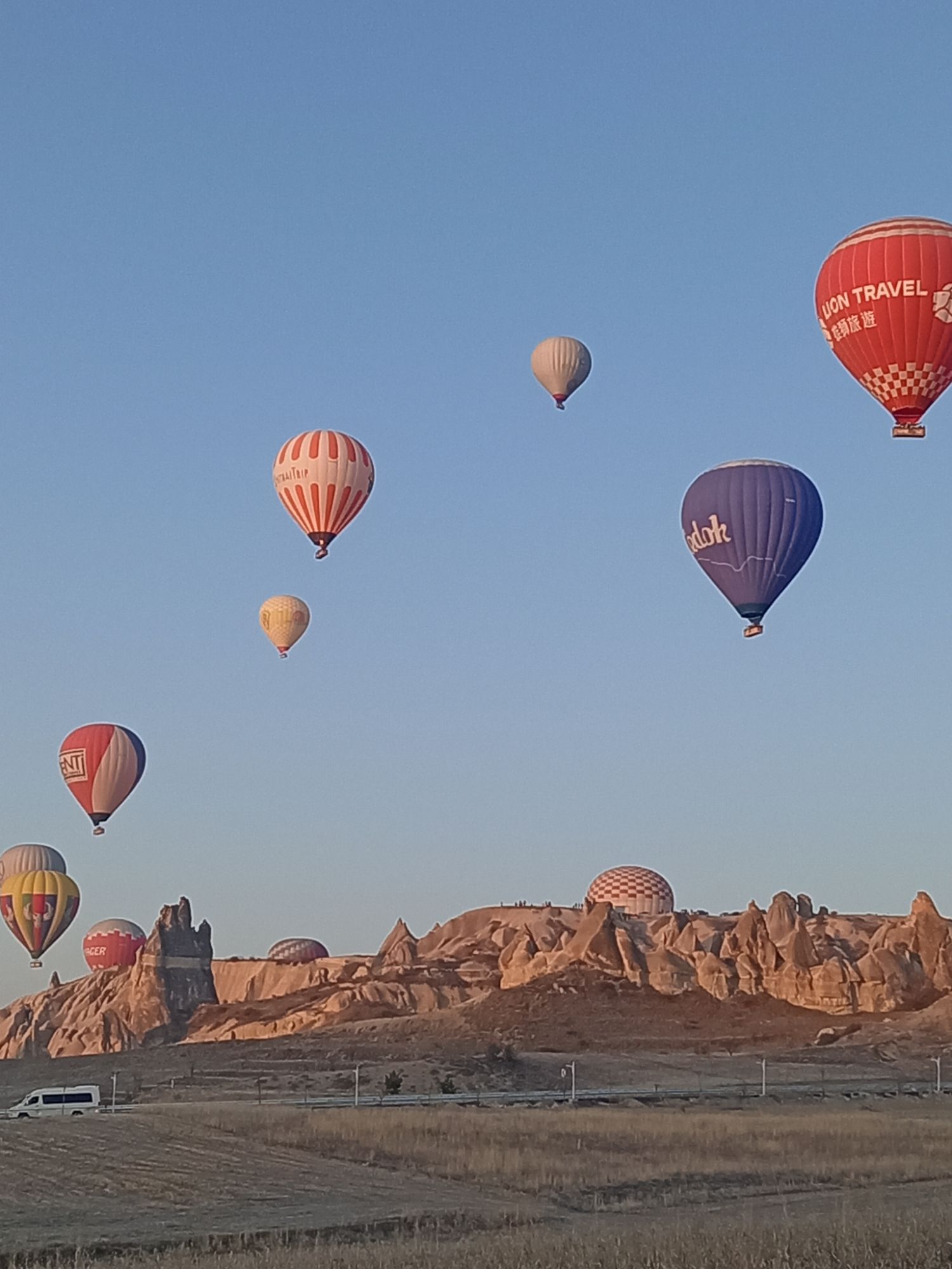 Încet-încet se luminează de ziuă, urcăm în nacela pe jumătate ocupată de un grup de coreeni, adică eu sunt mai mult urcată, Ștefan mă împinge de fund, iar un coreean mă trage de o mână. Uf! Am urcat 32 de turiști, alături de un ”căpitan” și un ajutor. Balonul mai are nevpie de ceva ”jăratic”, de jos e susținut de încă două persoane cu niște frânghii groase, apoi ușurel, tocmai la momentul oportun, cei de jos scot frânghia, iar noi ne ridicăm fără cel mai mic balans, acum mă simt ca un fluture imens, dar incredibil de ușor.