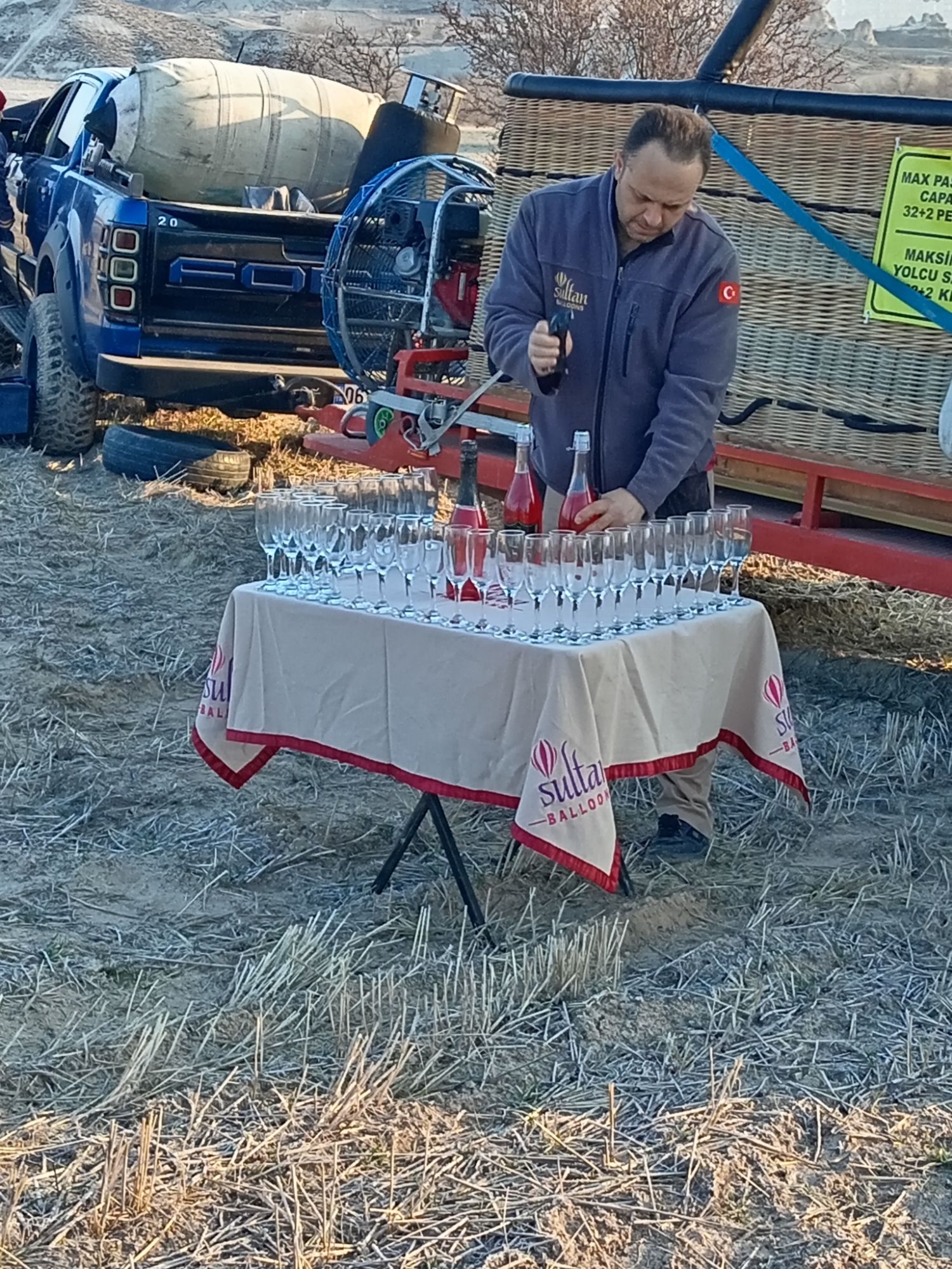 Din păcate, după 45 de minute mirajul s-a sfârșit, am aterizat exact pe platforma cu care venise balonul la început, care fusese adusă de către cei ce rămăseseră la sol. Am fost primiți cu șampanie (pentru copii, că turcii nu beau alcool în mod oficial), apoi ne-am întors la hotel, pentru micul dejun. La 9,15 am pornit din nou spre Antalya, unde vom mai sta trei nopți.