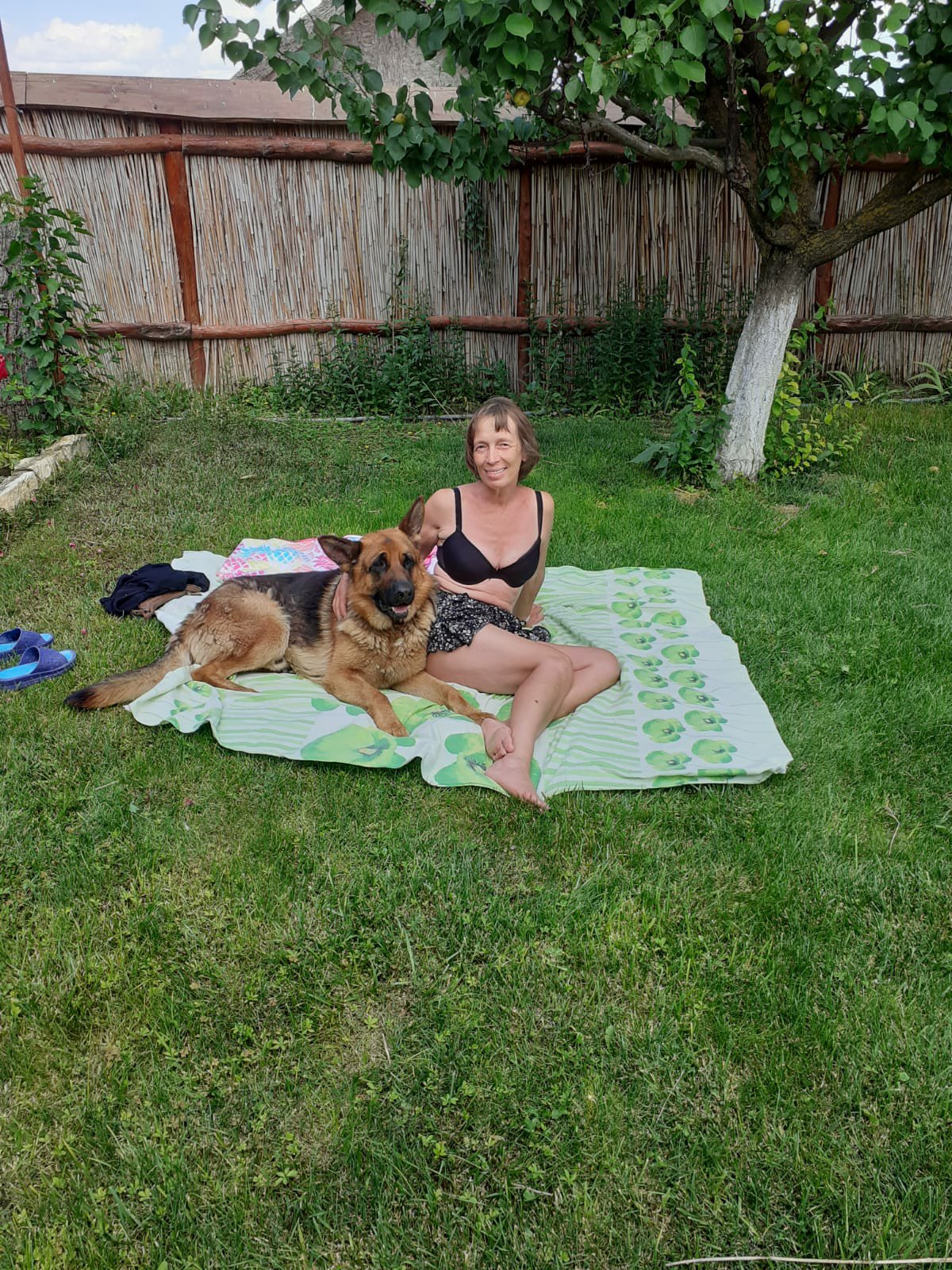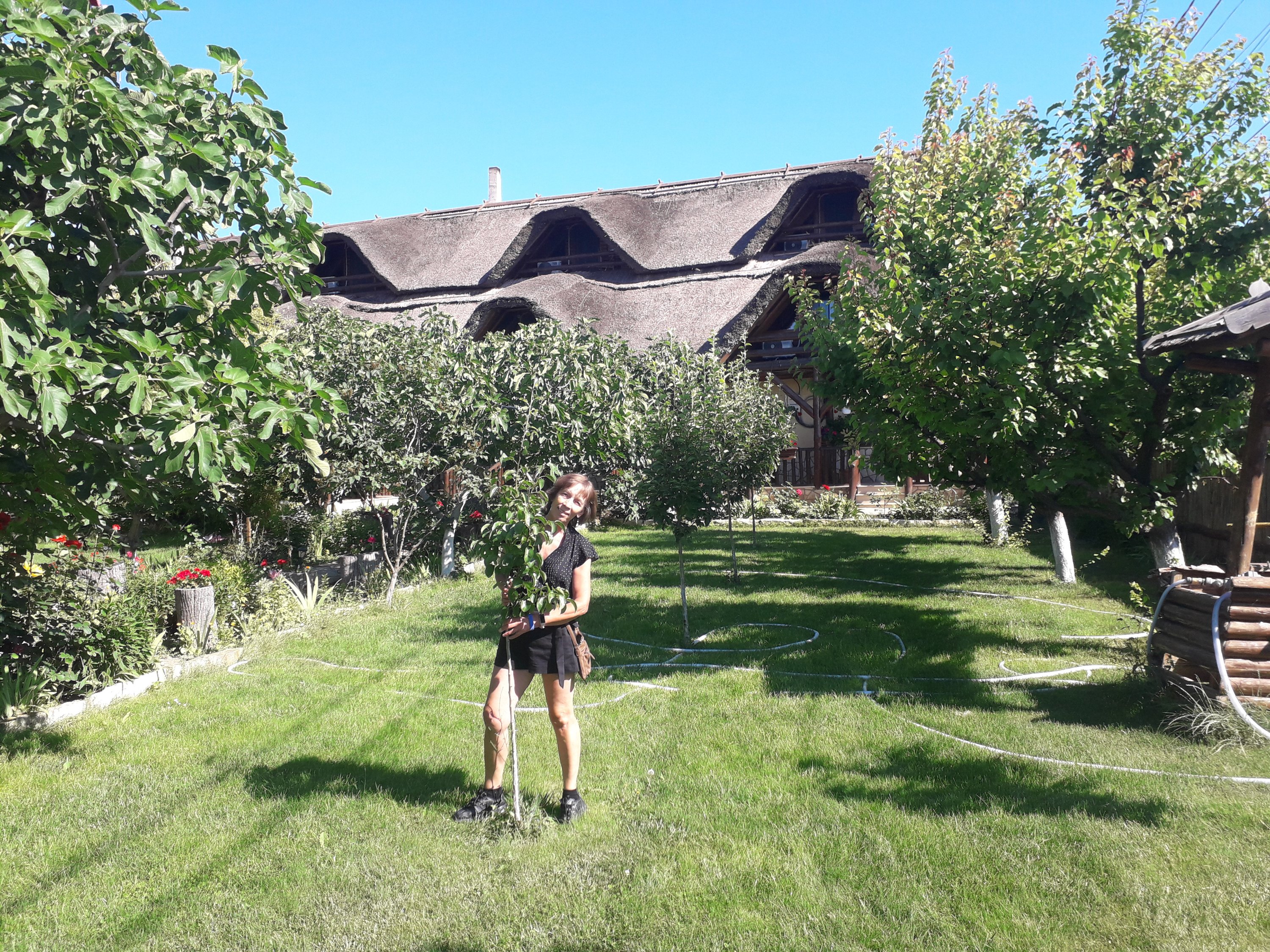 Ei, după ce mi-am pus și eu burta la cale, ce aș mai putea face? Nimic mai plăcut decât să citesc o carte, pe cearceaf, în fața camerei noastre. Din fericire, e cea mai ferită, chiar în capătul curții. Soțul meu îmi aduce o cafea, iar după-masa devine din ce în ce mai plăcută. Cum stăteam eu pe burtă foarte atentă la ceea ce citeam, o atingere pe gambe m-a făcut să cred că a venit Andrei, pentru conversație și cireșe. Andrei, tu ești? apuc să zic, până când, întorcându-mă, mi-a stat inima în loc. Un câine cât o casă mă mirosea, apoi, fără nicio invitație, s-a trântit lângă mine, pe cearceaf. Ei, acum urmează țipetele mele: Ștefan, Ștefan! Nu ca să mă apere îl strigam, ci ca să-mi facă o poză. Noroc că a venit la timp, fiindcă am decăzut destul de repede din grațiile lui Apollo, cum am aflat mai târziu că se numește câinele, care s-a dus să exploreze alte orizonturi. Apollo are și o soție, pe nume Hera, așa că la pensiunea Heracleea, te simți oarecum ca în Olimpul Antic, înconjurat de atâtea zeități.
