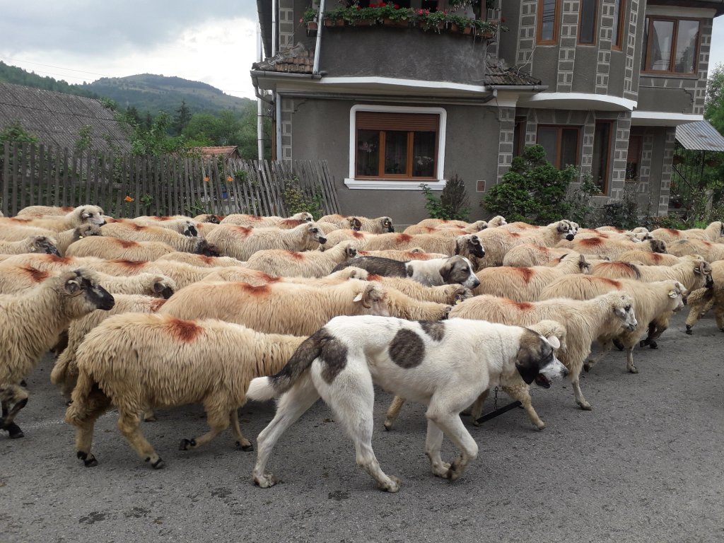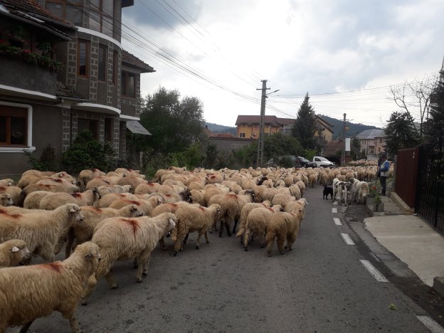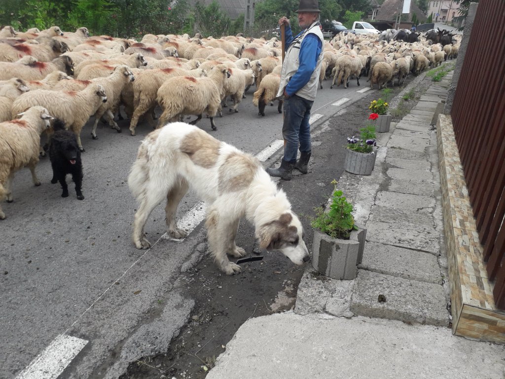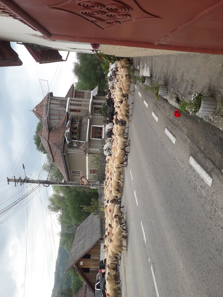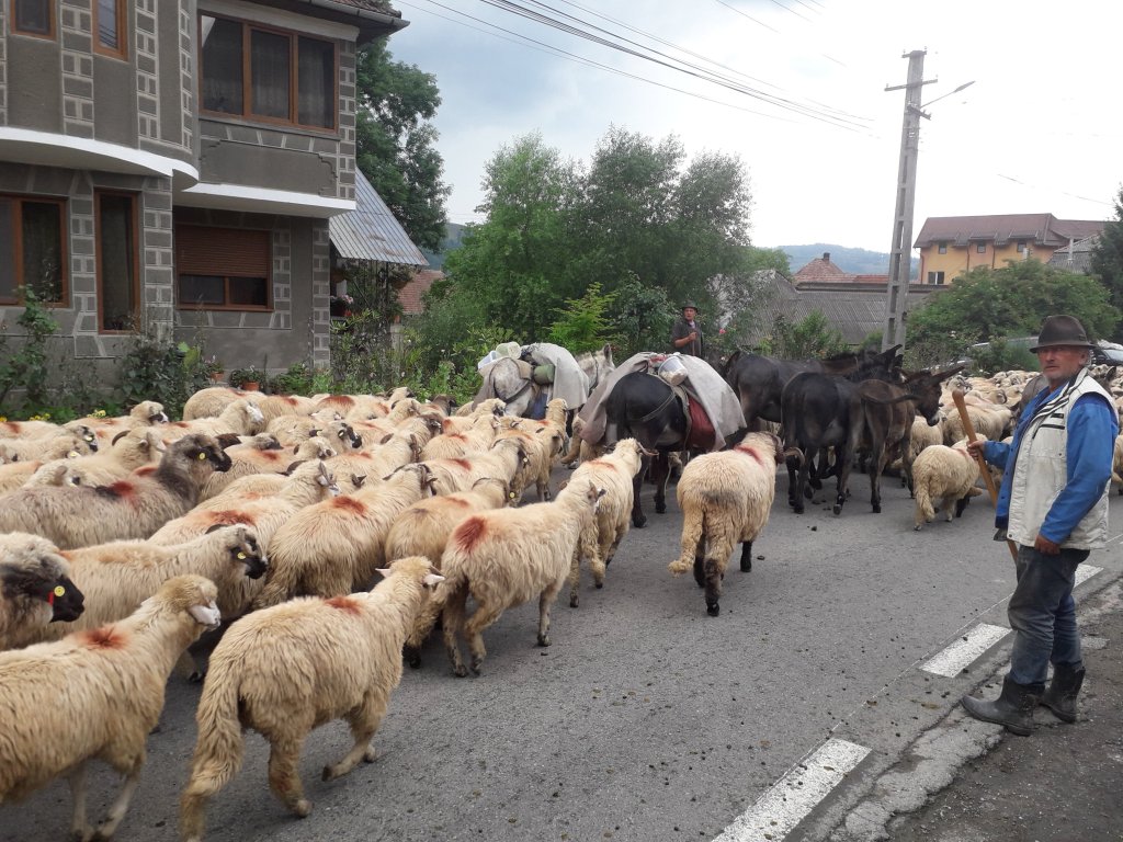 Șiii, ce să vezi, o mare de oi se revărsa dinspre Hădărău, cum nu prea mai ai ocazia să vezi prin România. Mânate de câțiva baci, cel puțin zece câini cât niște viței și tot vreo zece măgari, care veneau exact așa cum spune vorba din popor, ”ca măgarii-ntre oi”, cărând cu stoicism tot calabalâcul necesar instalării la munte.