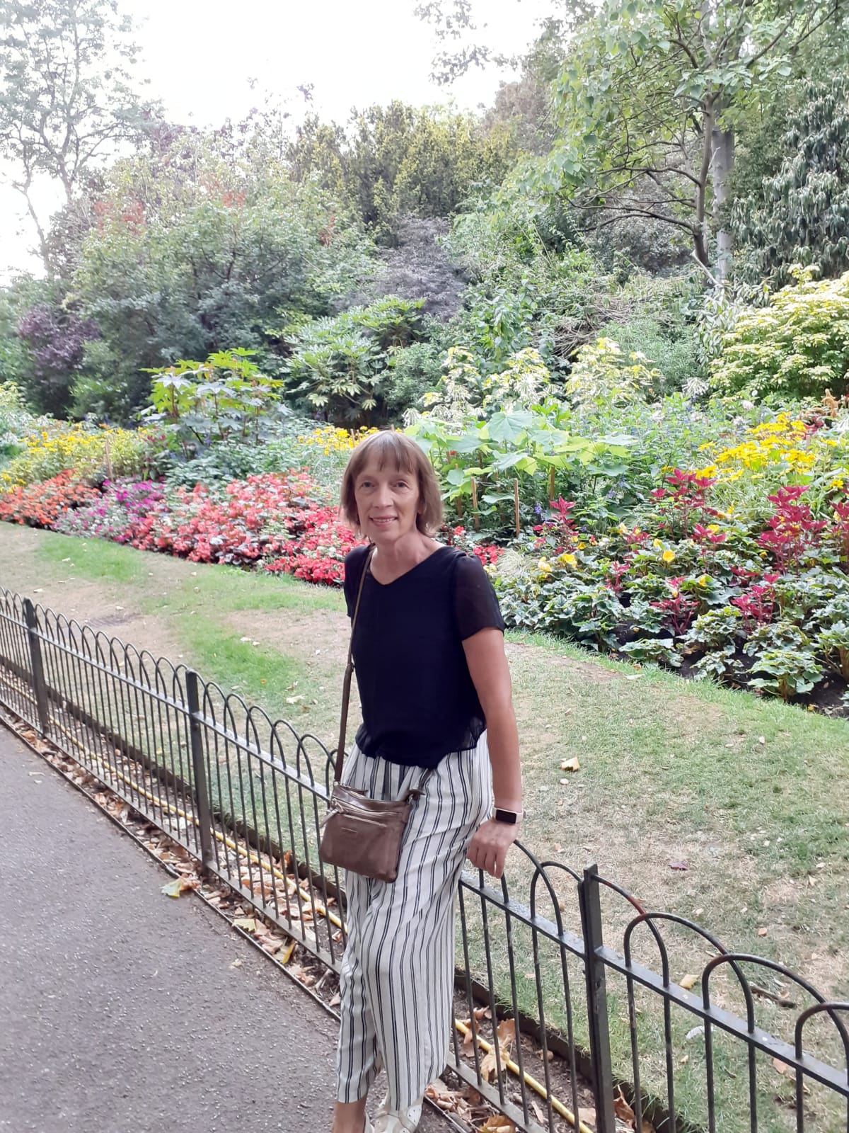 După toate acestea, am ieșit în minunatul parc, cu copaci tunși ”periuță”, cu gazon cam ofilit din pricina secetei și cu rondouri de flori spectaculoase, de unde, ca să fiu sinceră, am ”furat” și eu niște idei.