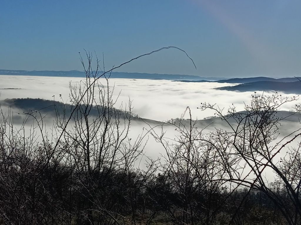 Totuși am fost norocoși, de la Aiud spre Râmeț e un peisaj de poveste, cu păduri de fagi ale căror frunze ruginii li s-au așternut la picioare, cu o groază de curbe care-ți încetinesc mersul și-ți încearcă măiestria de șofer… Apoi, dintr-o dată, am intrat în ceață și am ieșit deasupra ei. Eram pe Tărâmul Basmelor cu siguranță, o mare pufoasă se așternea la picioarele noastre, dealurile mai joase păreau insule sau peninsule, iar în depărtare se zăreau Munții Retezat, înveliți în plapuma albă a zăpezii.