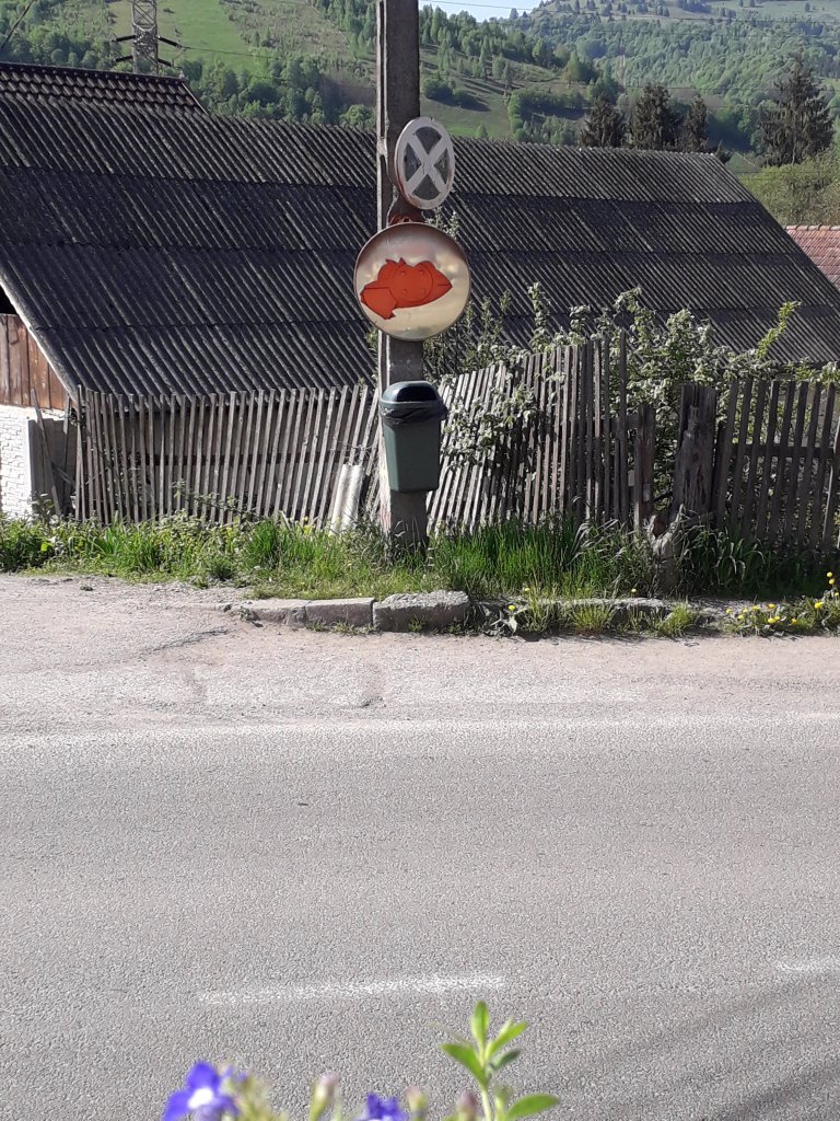 Coșul e frumos, nu-i vorbă, dar, pentru ca peisajul să fie un pic deteriorat, o mână de om ”civilizat” a spart oglinda din intersecție. La ce ne mai trebuie, că nu-i a noastră, nu-i așa? Am observat că e spartă tocmai când mă pregăteam s-o spăl, (mai fac asta din când în când), ca să se vadă mai bine. Ghici ce, acum se vede ditamai gaura…!
