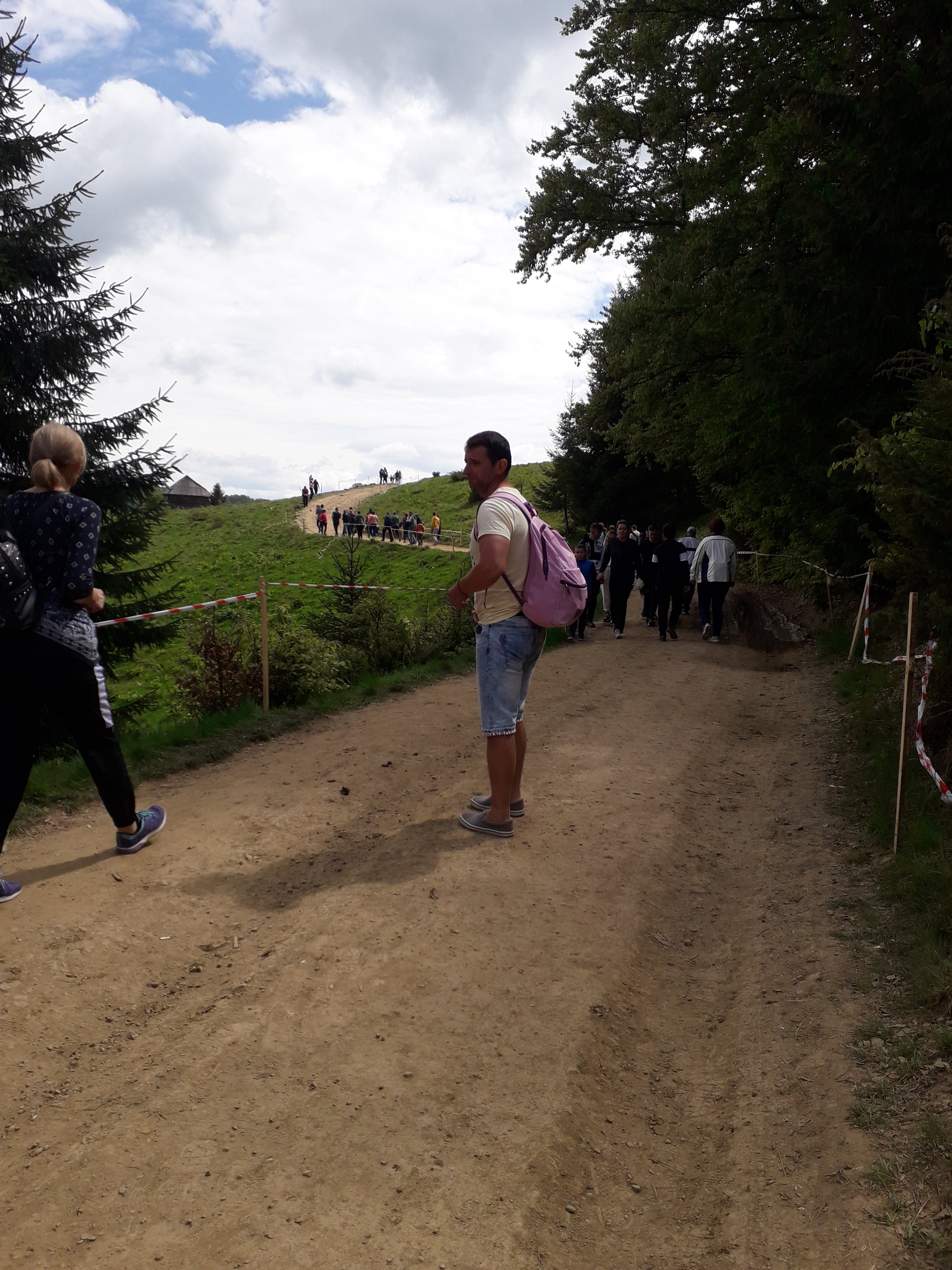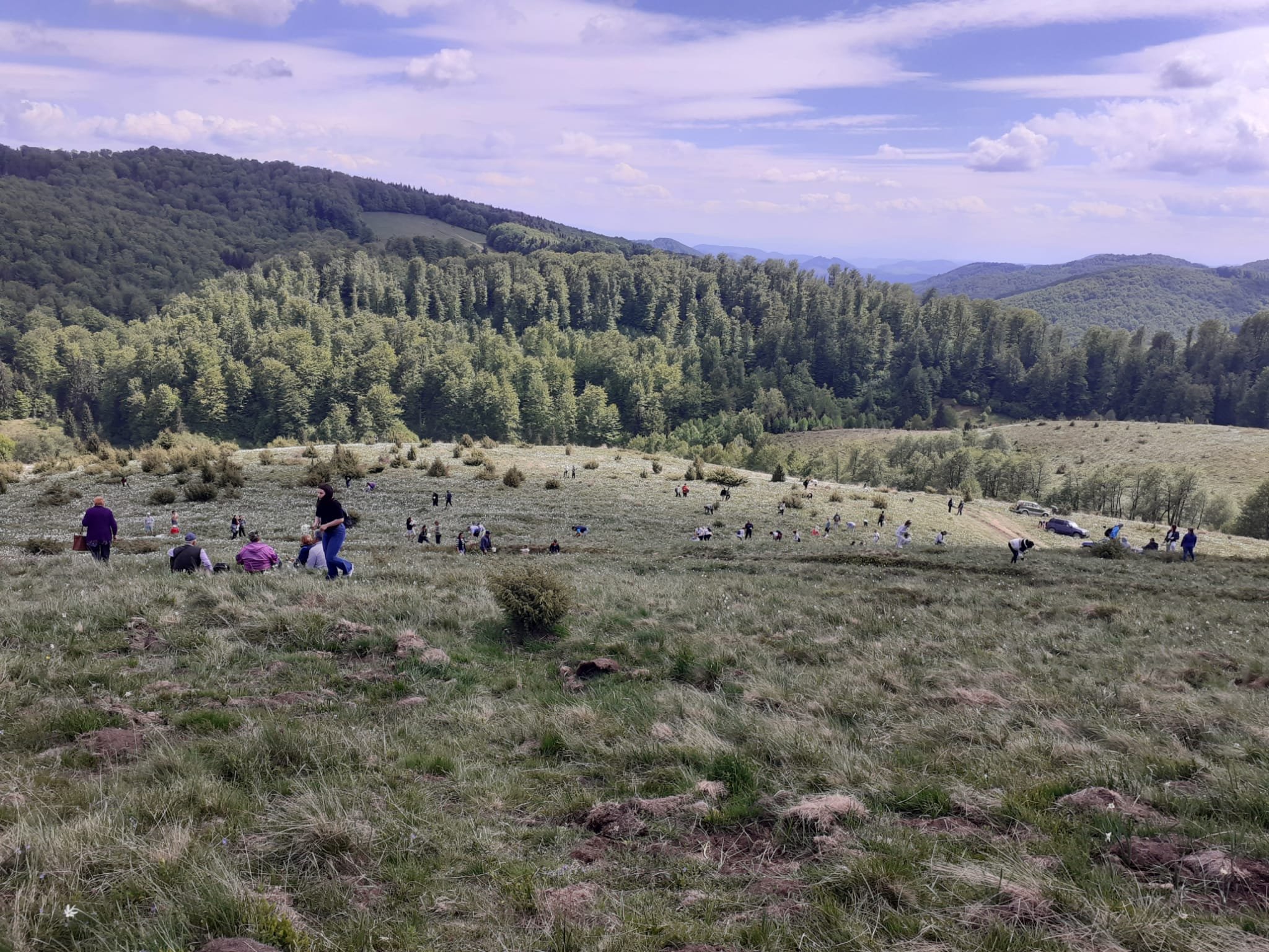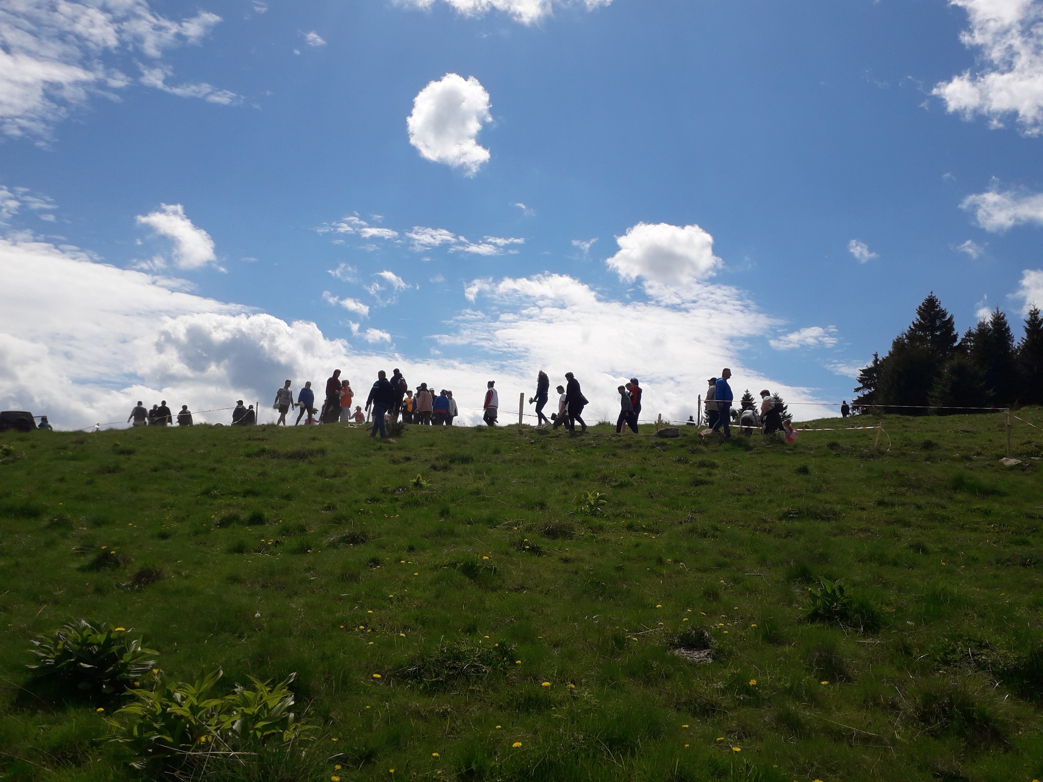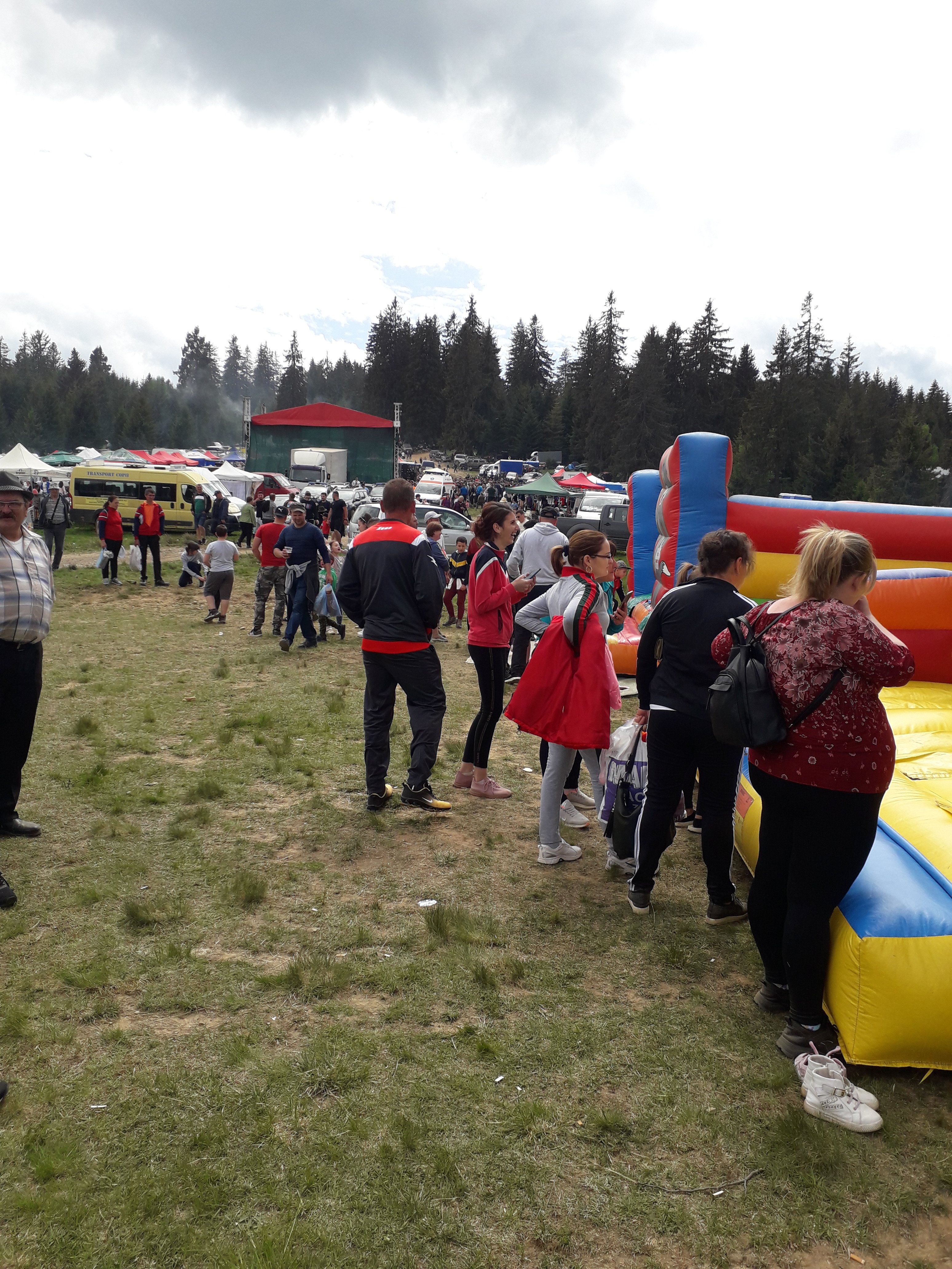 Cu încurajări pentru șofer și mașină, iaca trecem de panta buclucașă cu bine, iar după încă un kilometru și jumătate de curbe și pante (dar nu atât de grele), iată-ne în plină nebunie. Un platou imens, plin de mașini. Am înțeles că unii erau acolo încă de vineri.