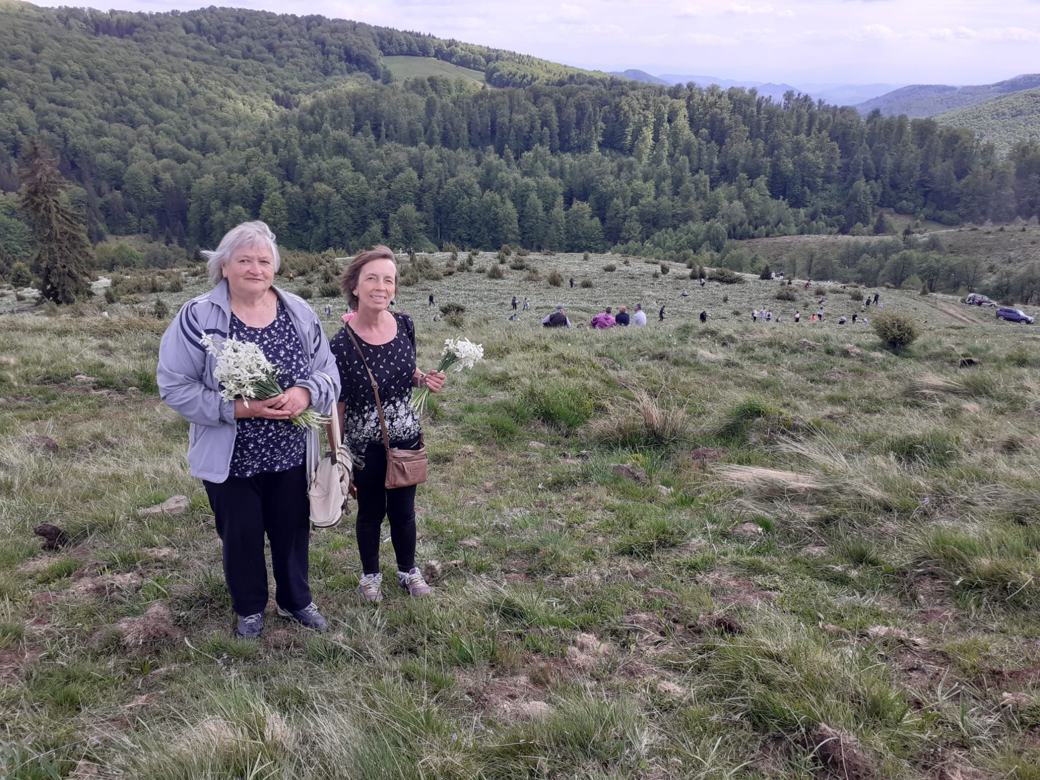 Târg ca la Găina, scenă de unde vin valuri de muzici populare, lume ce mișună în toate părțile… Gata, cred că nu mai este nicio narcisă, zic eu, cu miile astea de oameni care le culeg și le calcă în picioare de trei zile. Totuși, ne îndreptăm (Mariana și eu) spre drumul de pe care, culmea, oamenii mai vin cu buchete de narcise. Ștefan rămâne pe lângă mașină, a parcat-o într-un loc în care i-a blocat pe alții.